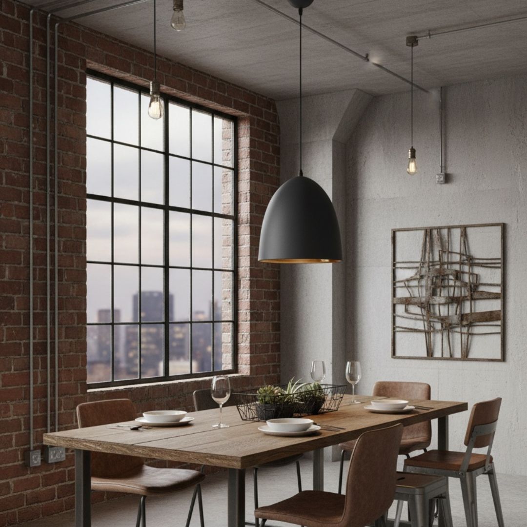 La lampe à suspension en métal noir avec intérieur vieil or est idéale pour une variété de styles décoratifs, du moderne et minimaliste à l'industriel et au vintage.