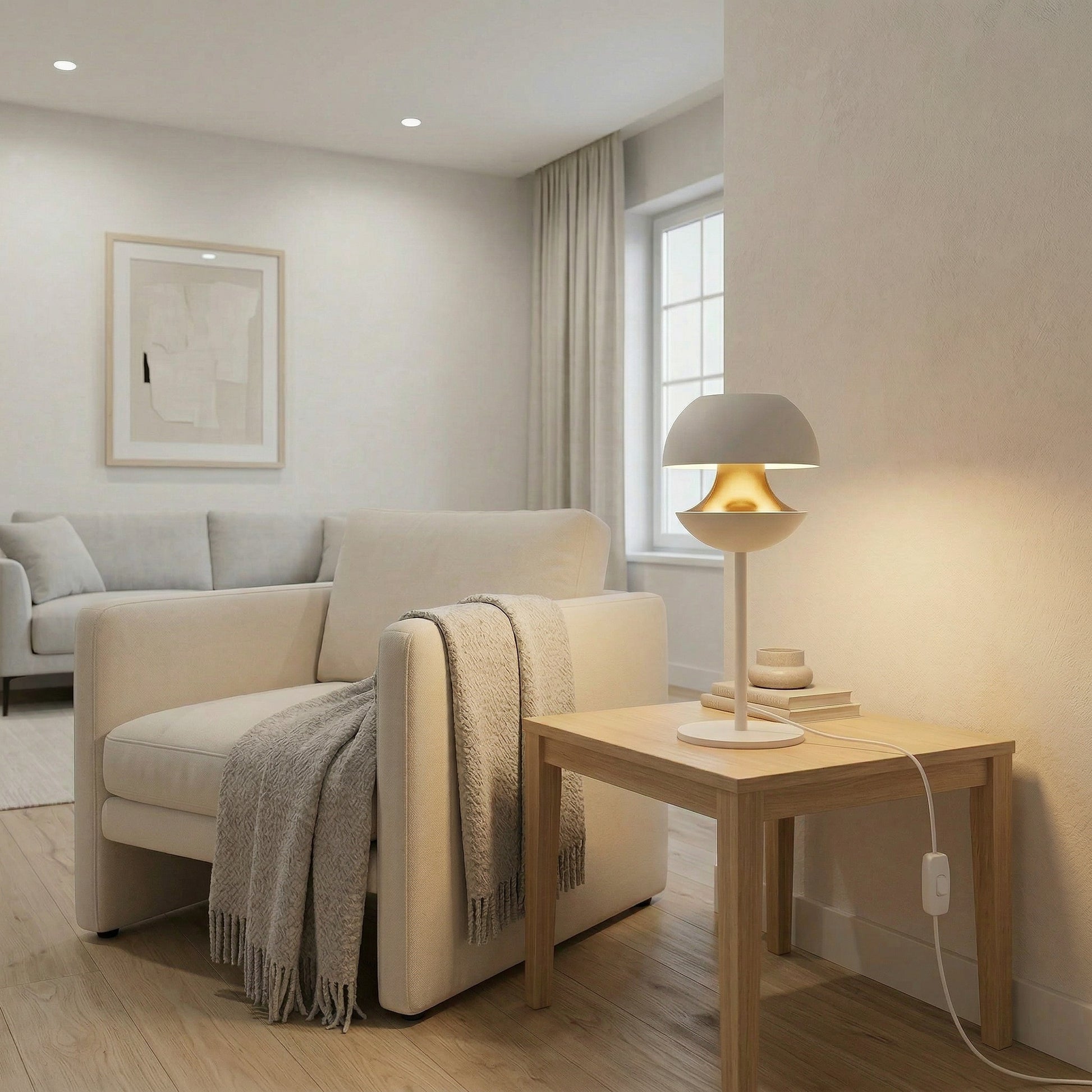 L'abat-jour blanc diffuse une lumière douce et diffuse qui crée une atmosphère chaleureuse et accueillante, tandis que les détails dorés apportent une touche d'élégance et de sophistication. Cette combinaison de couleurs permet à la lampe de s'intégrer harmonieusement à une variété de styles de décoration, du classique au moderne et au chic.