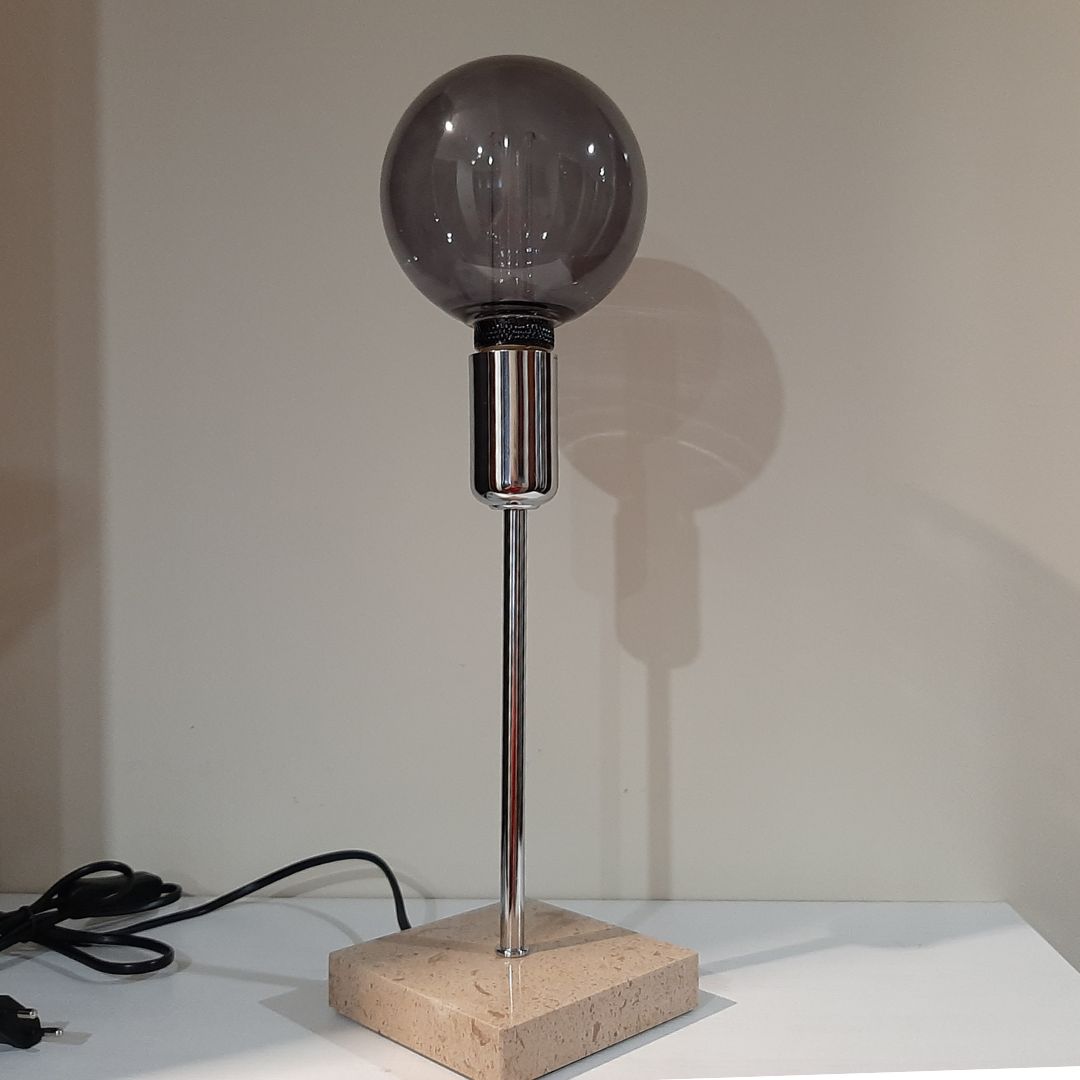 La base de mármol marrón aporta un toque natural y lujoso, asegurando estabilidad y longevidad. Su acabado único en mármol hace que cada lámpara sea una pieza única. El pie plateado añade un contraste moderno y elegante, creando una combinación perfecta entre lo clásico y lo contemporáneo.