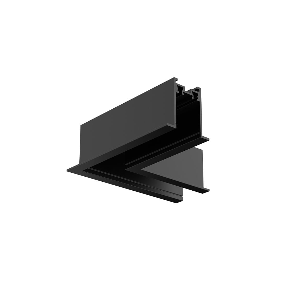 El Conector en L para Mini Carril Magnético Empotrable Especial Pladur permite unir dos tramos de carril formando un ángulo de 90°, ideal para esquinas y rincones en instalaciones empotradas.