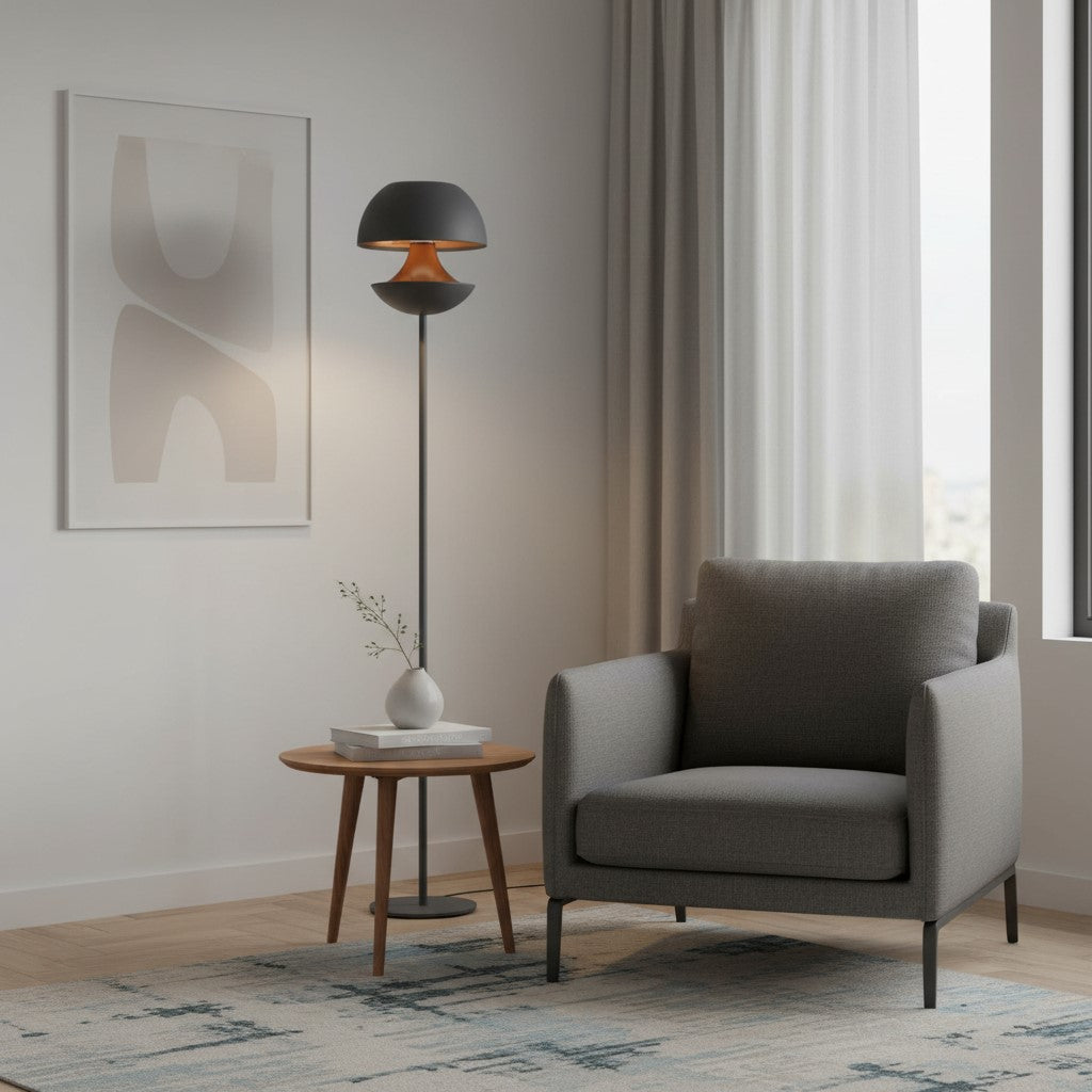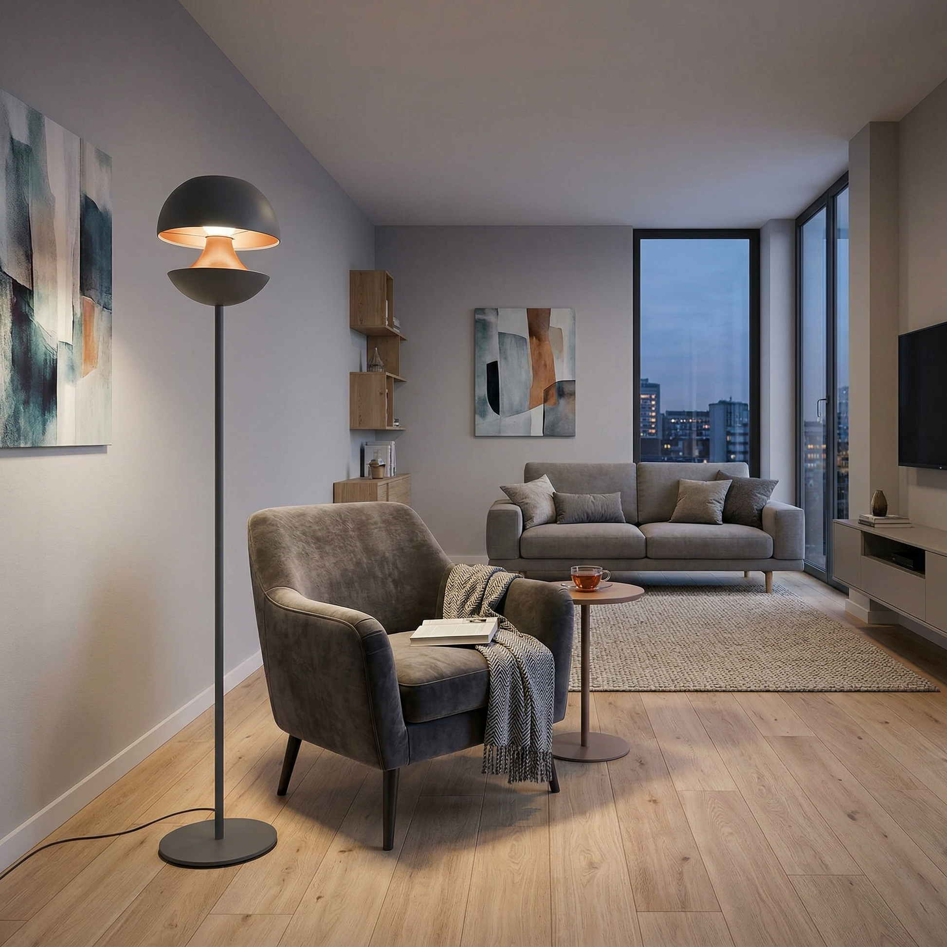 Candeeiro de pé de grande estabilidade graças à sua base pesada.